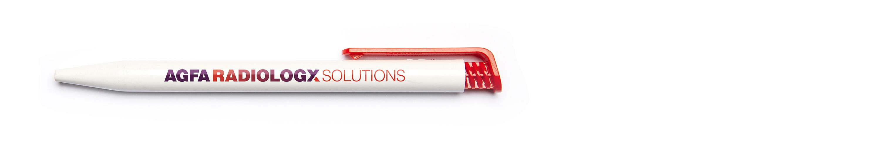 Our branded ballpoint is a nice gift. Here we apply a special landscape version of the logo, which is only to be used when there is not enough space for the regular version, where the three words are stacked.